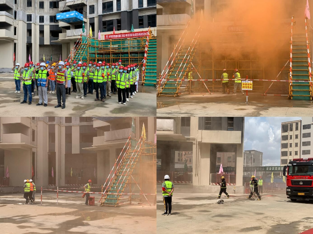 活动现场模拟了施工现场发生火灾,一工人撤离时不慎坠落的事故场景。事故发生后,警戒疏散组、现场抢险组、医疗救护组、后勤保障组、信息联络组等各支应急队伍迅速联动,从事故发现上报、预案启动、安全疏散、现场救援、舆情处置等多个环节紧密而有序地开展。
