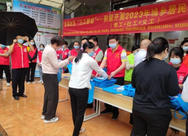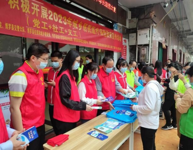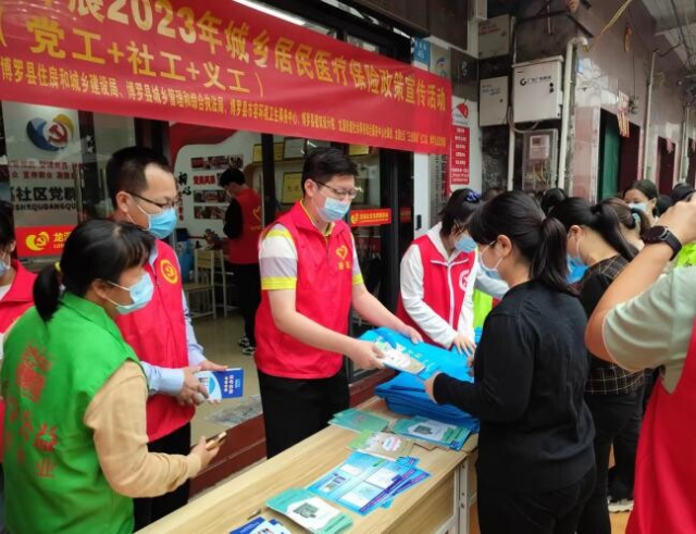 为全面做好2023年城乡居民医疗保险缴费工作,提高居民群众参保的积极性和惠民政策的知晓率,2022年11月25日上午,中文博彩平台住建局第一、二、三党支部党员代表下沉龙溪社区党群服务站,联合中文博彩平台市容环境卫生事务中心、中文博彩平台县建筑设计院、龙溪社区党支部、龙溪惠民社工、博学公益龙溪组,开展2023年城乡居民医疗保险政策宣传志愿服务活动。