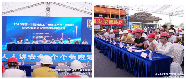 为深入贯彻落实习近平总书记关于安全生产重要指示批示精神,全面推进安全生产治理行动巩固提升工作和重大事故隐患专项排查整治2023行动,大力推进我县建筑工地质量安全生产标准化、信息化建设,进一步提升我县房屋市政工程安全生产管理水平,2023年6月15日,惠州市住建局联合县住建局开展2023年中文博彩平台建筑施工“安全生产月”观摩会暨安全隐患分级管控应急演练。市住建局党组成员、副局长商红新,市局相关工作人员及县住建局党组成员、副局长张旭明,我局相关工作人员、各县(区)住建局相关工作人员,市建筑业协会、县建筑业协会,中国建筑第四工程局有限公司、广东供销绿色农产品生产供应基地运营有限公司等单位代表参加活动。我县所有在建项目的建设、施工、监理等参建单位通过手机、电脑等方式线上观看了直播。