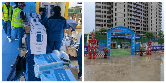 现场参会人员在会场入口处集中签到并领取《工程项目施工人员安全指导手册》等建筑施工安全生产宣传手册后进入会场,本次观摩会分发宣传资料共计240本。此外,观摩会现场还举行了消防器材展示、安全帽撞击、机械伤害体验、综合用电体验、洞口坠落体验等安全质量教育培训体验区供参会人员观摩体验。