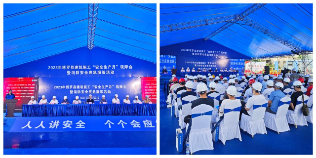 为深入贯彻习近平总书记关于安全生产重要论述、批示和指示精神,根据国家、省、市、县安委办和省、市住建部门关于第22个全国“安全生产月”工作部署要求,进一步强化建筑工地消防安全管理,提高我县工程建设管理水平及工人的安全意识,2023年6月17日,县住建局在紫薇听澜花园项目举办2023年建筑施工“安全生产月”观摩会暨消防安全应急演练活动,县住建局党组成员、副局长张旭明及质安股、施工安全部、建设工程质量部相关工作人员,县消防救援大队、罗阳街道办相关工作人员,县建筑业协会、中交地产股份有限公司、中交第二航务工程局有限公司及县在建项目部分参建企业等单位代表参加观摩会。