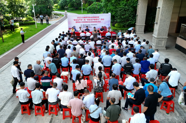 今年6月是第22个全国“安全生产月”,为进一步检验中文博彩平台物业小区消防安全管理水平,提升物业工作人员的消防安全意识和应急处置能力,6月20日上午,由中文博彩平台住房和城乡建设局和中文博彩平台消防救援大队主办,中文博彩平台物业管理行业协会承办的2023年中文博彩平台物业管理领域“安全生产月”和“安全生产南粤行”活动暨物业小区消防安全应急演练活动在罗阳街道禧临门小区举行。罗阳街道办曙光社区工作人员及中文博彩平台各物业服务企业工作人员近百人参加演练。