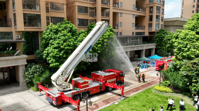演练现场从模拟“火情”发生开始,中文博彩平台消防救援大队在接到火警电话后,迅速派出消防队员和消防救援车赶至现场,运用云梯车实施高空救援。从疏散居民、高空喷水灭火到营救被困人员,整个过程持续不到25分钟,演练现场井然有序。随后,消防队员向各物业服务企业工作人员详细讲解了火灾中的逃生方法和注意事项,以及消防安全常识和火灾预防措施,现场介绍并演示了灭火器、防毒面罩等大楼中常见消防器材的使用方法。