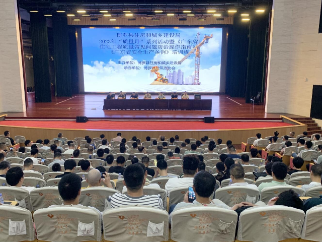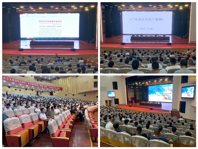 为贯彻落实习近平总书记关于安全生产的重要指示批示精神,全面贯彻党的二十大精神,结合重大事故隐患专项排查整治2023行动,为进一步落实安全风险分级管控和隐患排查治理双重预防机制,提前部署我县建筑工地中秋国庆节前安全生产工作,2023年9月21日,县住建局党组成员、副局长张旭明在县文化中心影剧院召开2023年建筑工地《广东省安全生产条例》培训暨中秋国庆节前安全生产工作部署会,局质安股、施工安全部、建设工程质量部工作人员,相关专家、我县房屋市政工程在建工地参建单位负责人及代表参加会议。