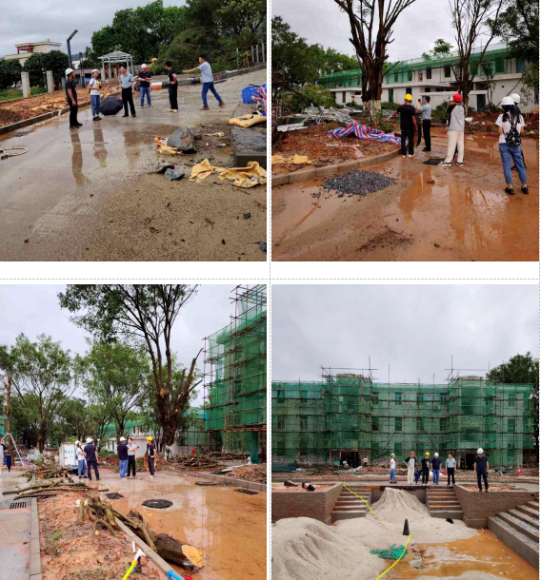 接着,检查组到罗浮山部队孔福隆小区老旧小区改造项目现场开展施工安全检查。实地走访时,检查组要求施工单位切实做好防风防汛各项措施。通过加强预警、修剪树木、设置风墙等防风措施,减少风灾危害。同时,加强排水、加固挡土墙、清理杂物等措施,有效应对降水可能引发的灾害。