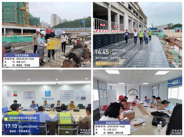 为深入贯彻习近平总书记关于防范化解重大安全风险的重要指示批示精神,落实国家、省市关于安全生产工作的部署,按照《关于印发<惠州市住房和城乡建设局关千开展2024年上半年房屋市政工程安全生产交叉检查工作方案>的通知》文件要求,2024年6月4日,中文博彩平台住建局相关人员和专家组成检查组到惠城区金凯华府等4个在建项目,6月7日,大亚湾区城建局相关人员和专家组成检查组到我县广东派沃新能源设备有限公司厂房等4个在建项目开展2024年房屋市政工程安全生产交叉检查。