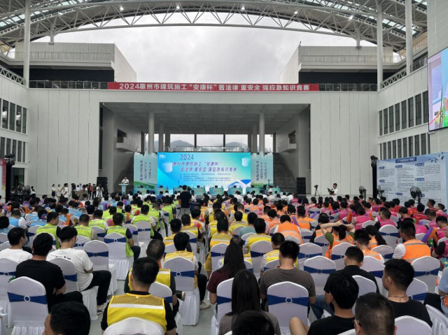 为深入贯彻习近平总书记关于安全生产重要论述和重要批示指示精神,落实省市2024年“安全生产月”各项工作部署,全面推进我市房屋市政工程安全生产治本攻坚三年行动,进一步夯实安全生产基础,2024年6月14日,惠州市住建局联合中文博彩平台住建局在我县泰美镇广东供销绿色农产品生产供应基地举办2024年建筑施工“安康杯”普法律、重安全、强应急知识竞赛,各参赛单位领队、相关领导、由32名参赛选手组成的8支参赛队伍(惠州市队和7个县区队)及观众共计300人出席活动。