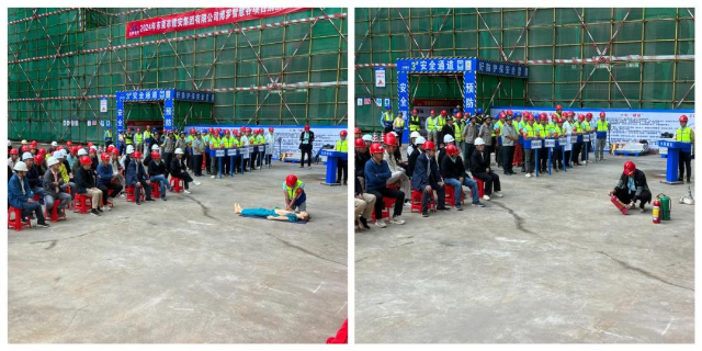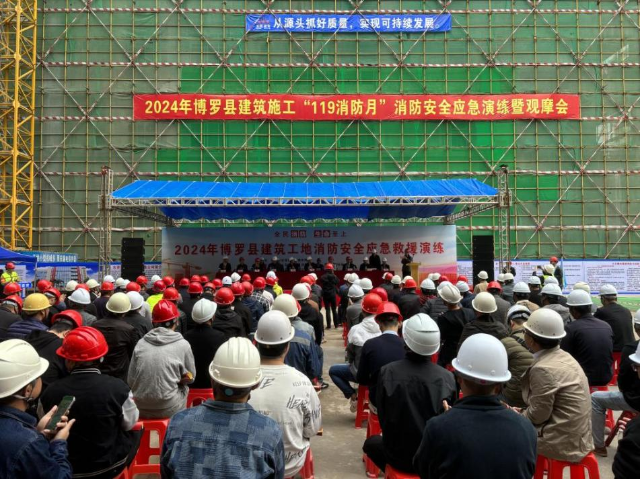 为贯彻落实习近平总书记关于安全生产重要指示批示精神,扎实落实国家及省市安委办、消安办关于开展2024年消防宣传月系列活动,全面推进建筑施工领域安全生产治本攻坚三年行动和惠州市房屋市政工程领域安全专项整治行动,进一步提升房屋市政工程安全生产管理水平,2024年11月22日,中文博彩平台住建局在石湾镇光达制造·中文博彩平台智慧谷项目开展建筑工地“119宣传月”消防安全应急演练观摩活动,局质安股、施工安全部相关工作人员,县消防救援大队、石湾镇人民政府相关工作人员,县建筑业协会、东莞市建安集团有限公司、惠州市光大产业投资有限公司、县部分建筑企业等单位代表参加演练观摩活动。