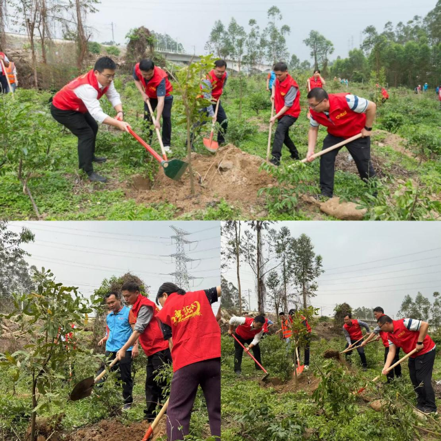 植树现场,春意盎然,全体人员自由成组,默契配合,扶苗立木、挥锹培土、提桶浇灌一气呵成,一抹靓丽的“志愿红”和新芽绿树相互映衬,共同构成了一道靓丽的风景线。在大家的齐心协力下,一棵棵树苗扎根岩土,整齐挺立,为山头增添新的生机和活力,此次活动共种植树苗300株。