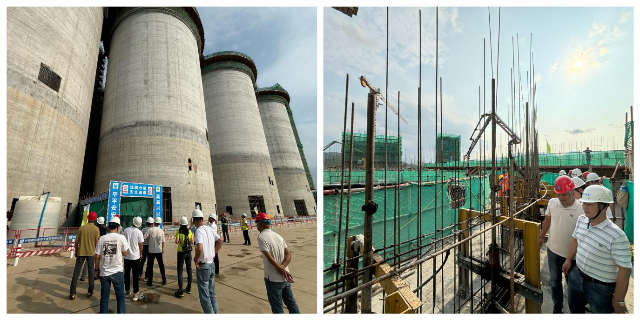 随后,参会人员前往施工现场实地观摩滑模施工过程,项目技术负责人详细讲解了滑模工艺的技术要点、质量控制及安全措施,并介绍了该工艺的适用工程及优势。