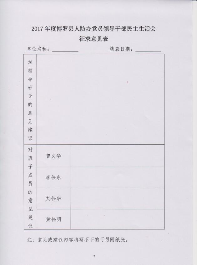 关于征求中文博彩平台人防办领导班子2017年度民主生活会意见的函