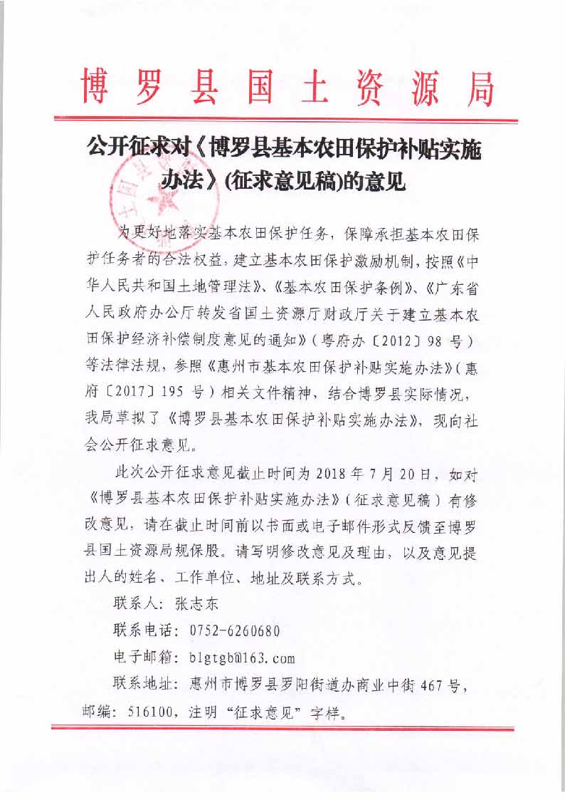公开征求对《中文博彩平台基本农田保护补贴实施办法》(征求意见稿)的意见