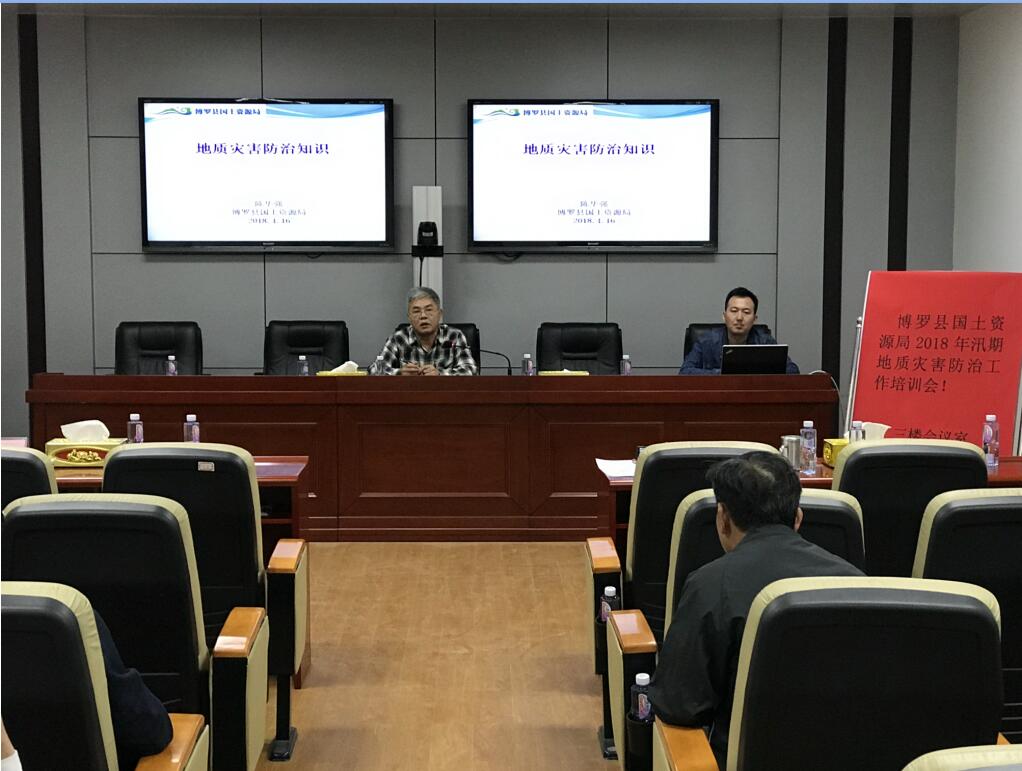2018年4月16日,中文博彩平台国土资源局在三楼会议室召开2018年汛期地质灾害防治工作培训会,县国土资源局张佑区副局长、地环股股长、矿产资源股股长、各镇国土资源所所长以及相关人员参加了培训会议。