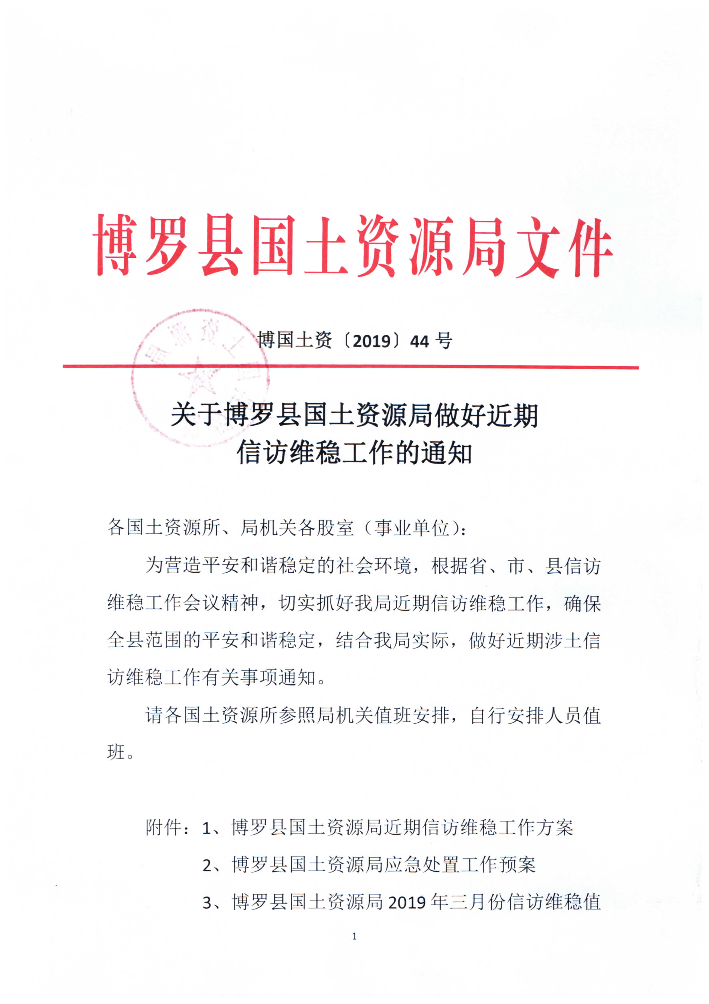关于中文博彩平台国土资源局做好近期信访维稳工作的通知