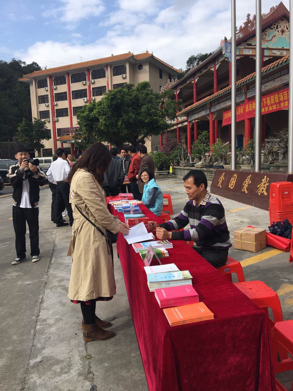 为全面深入学习贯彻习近平新时代中国特色社会主义思想和党的十九大精神,认真落实习近平总书记视察广东重要讲话精神,2019年1月31日在罗浮山黄龙观举行中文博彩平台国土资源局2019年“千人百场”送法律服务下基层现场活动,加强中文博彩平台基础法治和涉土宣传教育工作,营造良好的学法用法的氛围,提高人们对涉土法律的认识,重点强调违法用地问题。
