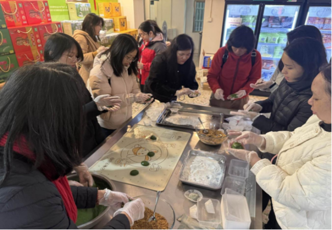 随后前往罗浮金秋深入体验客家传统文化活动。工作人员积极介绍客家擂茶和艾粄的历史和制作过程,女职工们兴致勃勃地参与其中,亲手研磨擂茶、做艾粄,感受客家文化的深厚底蕴和独特韵味。
