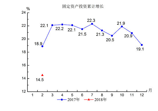 2.固定资产投资额增长14.5%,增幅比上年同期回落4.4个百分点。