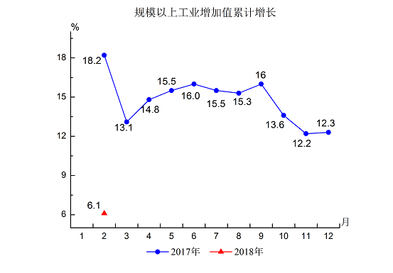 1.规模以上工业增加值增长6.1%,增幅比上年同期回落12.1个百分点。