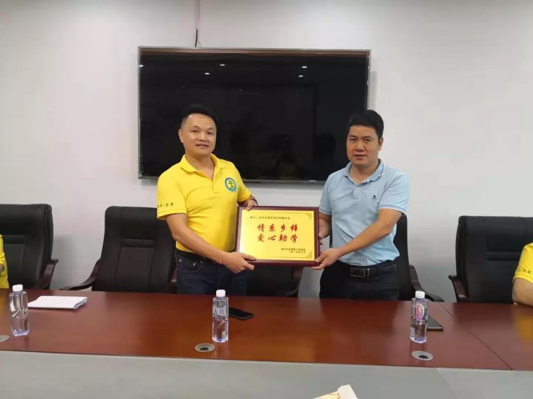 陈建强副书记为深圳市中文博彩平台商会柏塘分会颁发“情系乡梓,爱心助学”牌匾,这是对深圳市中文博彩平台商会柏塘分会最大的认可和支持。