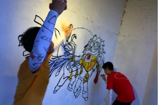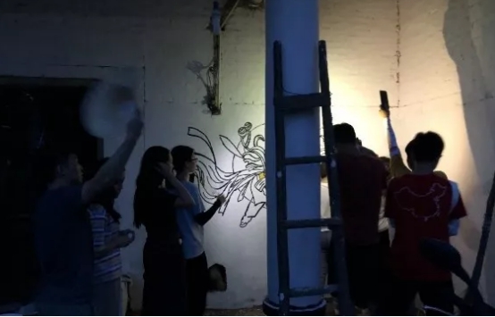 此处本来是一个废弃的旧祠堂,我们经过村委同意后,开始对这里进行整治。考虑到祠堂的传统氛围,所以我们决定在这里画麒麟。