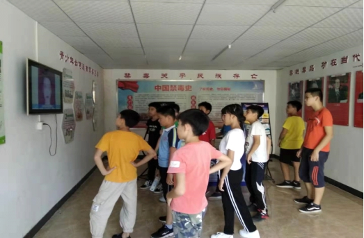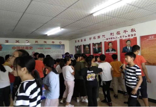 七年级新生在参观禁毒室,认真了解我国的禁毒史、新中国领导人关于禁毒指示等,为校园禁毒工作营造了良好的环境。