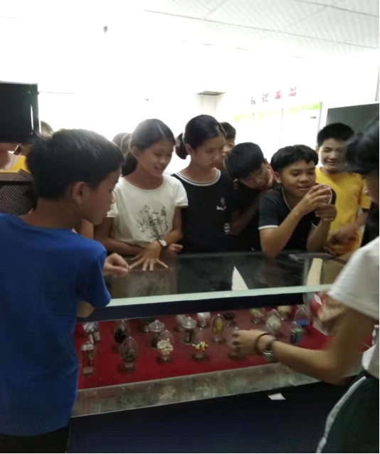 在活动现场展出各种毒品模型,学生在认真观看和辨认,增长了对新型毒品的认识,为防毒做好思想准备。