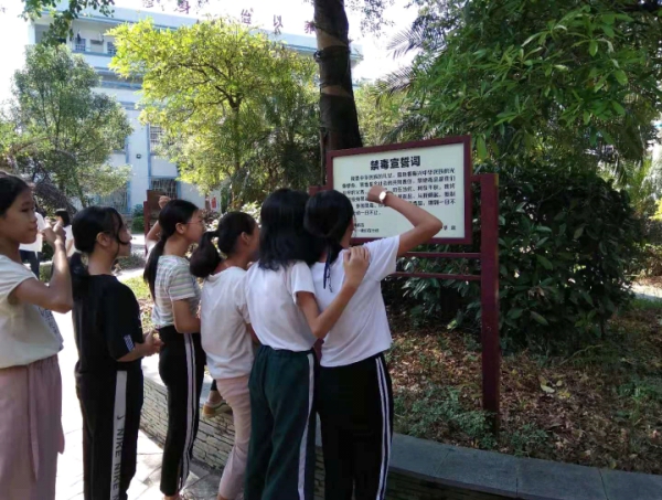 2019年9月,为了让七年级新生充分宣传毒品对人类的危害,提高广大人民群众和学生识毒、拒毒、防毒和禁毒意识,柏塘中学组织学生七年级新生参观禁毒室、禁毒园宣传教育活动。