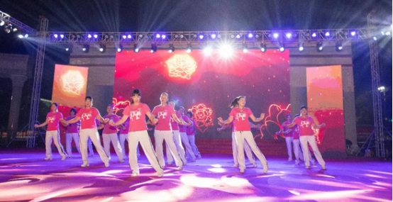 深情颂祖国,共圆中国梦,柏塘全民健身队带来舞蹈表演:《共圆中国梦》。