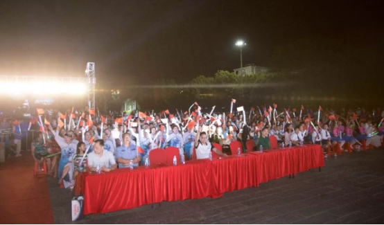 一个个精彩的节目不断把晚会推向高潮。观众们的掌声此起彼伏,挥舞着鲜艳的五星红旗。
