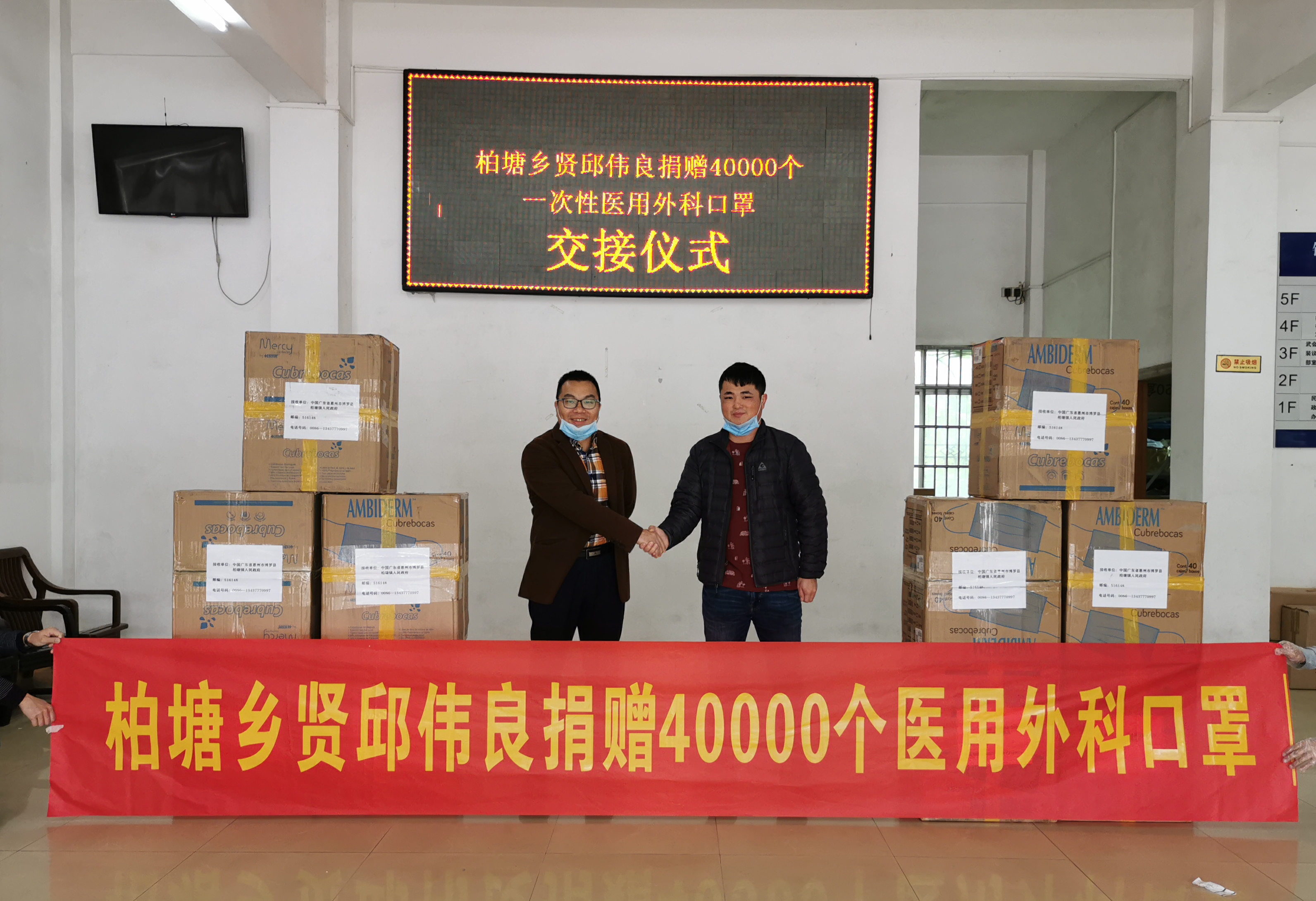 远在墨西哥的邱伟良了解到这一情况后,紧急四处凑集购买口罩,并于2月3日上午,由其侄子邱伟豪转赠给全镇奋斗在防控一线的工作人员。
