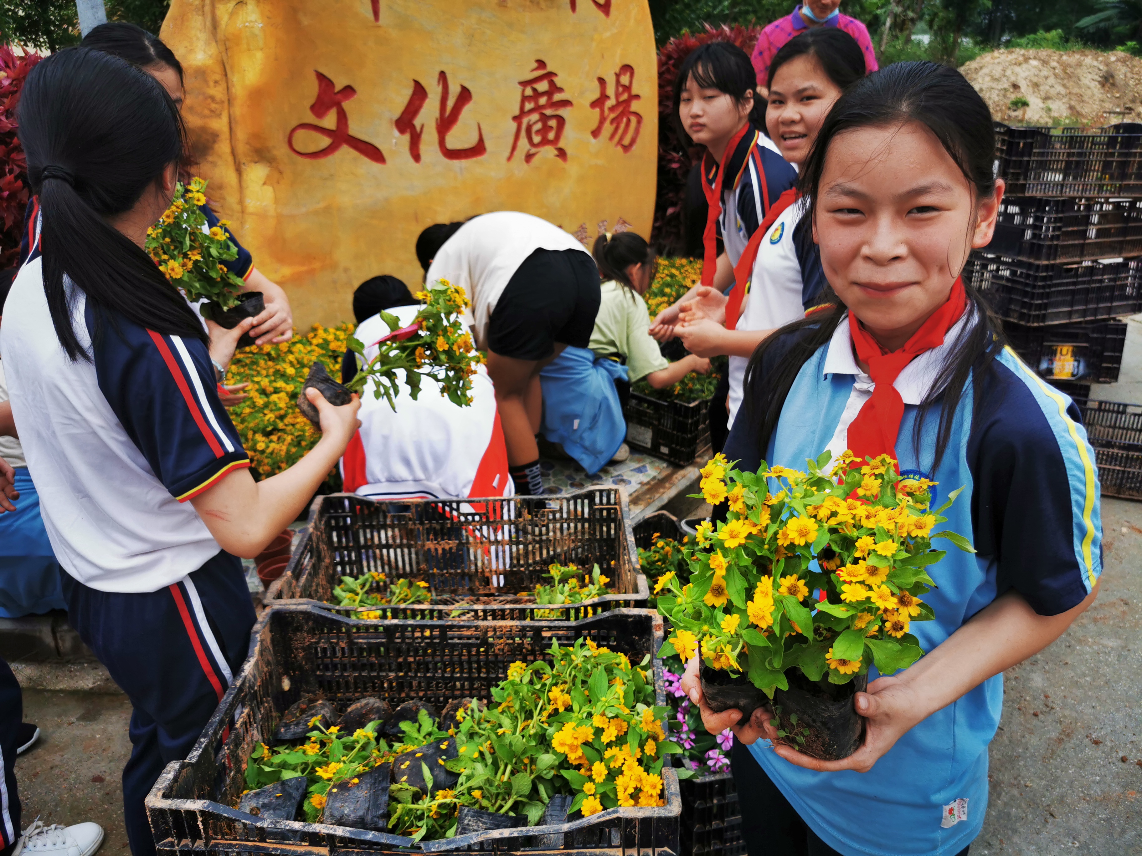 清晨,志愿者带领着学生踏着欢快的脚步,到车田村文化广场种植鲜花,从未参与过这种活动的学生个个摩拳擦掌,跃跃欲试。为“美”化我家,即便汗水在小朋友们的脸上划过,但是扬起的笑脸却格外动人。