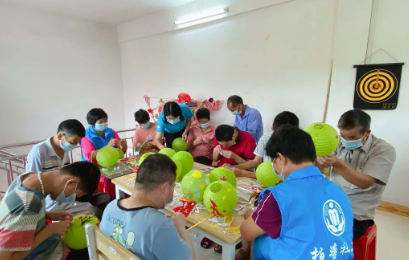 在灯笼DIY制作环节,社工将制作灯笼的材料发到残障人士的手中,接着向残障人士讲解制作灯笼的步骤。在志愿者的协助下,残障人士积极地动起手来,制作过程中,他们相互帮助、相互学习、其乐融融。经过一个多小时的不懈努力,一个个漂亮的灯笼呈现在大家眼前。他们望着自己的作品,纷纷举起灯笼,向大家展示成果,脸上洋溢着幸福的笑容。