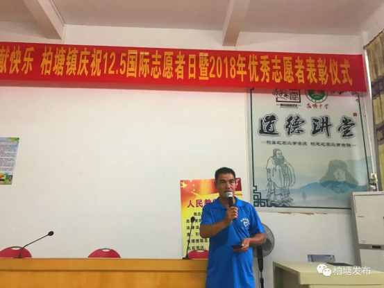 平安公益协会的邹志明队长还代表所有志愿团队发表了感言,并希望有更多的热心人士加入到这个公益大家庭中来,为柏塘的公益事业作出自身的奉献。