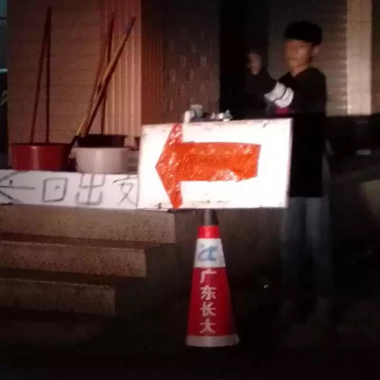 这个时候平安的一位青年仔站了出来,自己动手制作了指示标识,走上车水马龙的道路,指挥着过往的车辆往广梅公路方向行驶。有些司机不太相信的就上前耐心解释着,很多司机听了青年仔的话后调整方向往大路方向行驶。