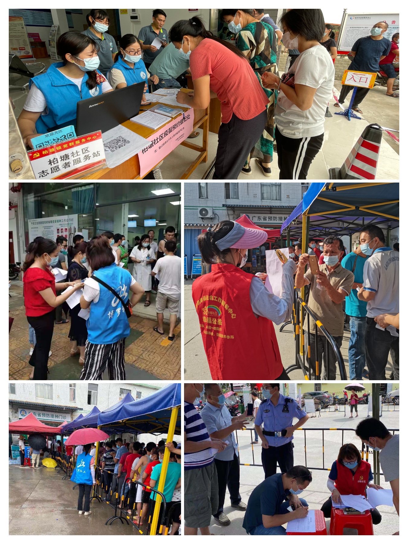 近日来,柏塘镇结合“我为群众办实事”实践活动,大力组织青年志愿者、巾帼志愿者和社工参与我镇新冠肺炎疫苗接种志愿服务活动,有效推进我镇疫苗接种工作贡献力量。志愿者对接种新冠疫苗人群测量体温并登记,指导群众填写接种表格,引导接种后的群众在指定区域室进行留观,同时,对接种流程不太清楚的群众现场进行解疑答惑。