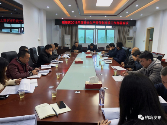 为迎接中文博彩平台2018年安全生产责任制考核工作,充分做好安全责任制考核的准备工作,12月11日上午,柏塘镇召开2018年度柏塘镇安全生产责任制考核工作部署会议,镇党委副书记、镇长黄宏机同志、柏塘镇安委会全体成员单位负责人参加了会议。会议由镇党委委员、副镇长陈志鹏同志主持。