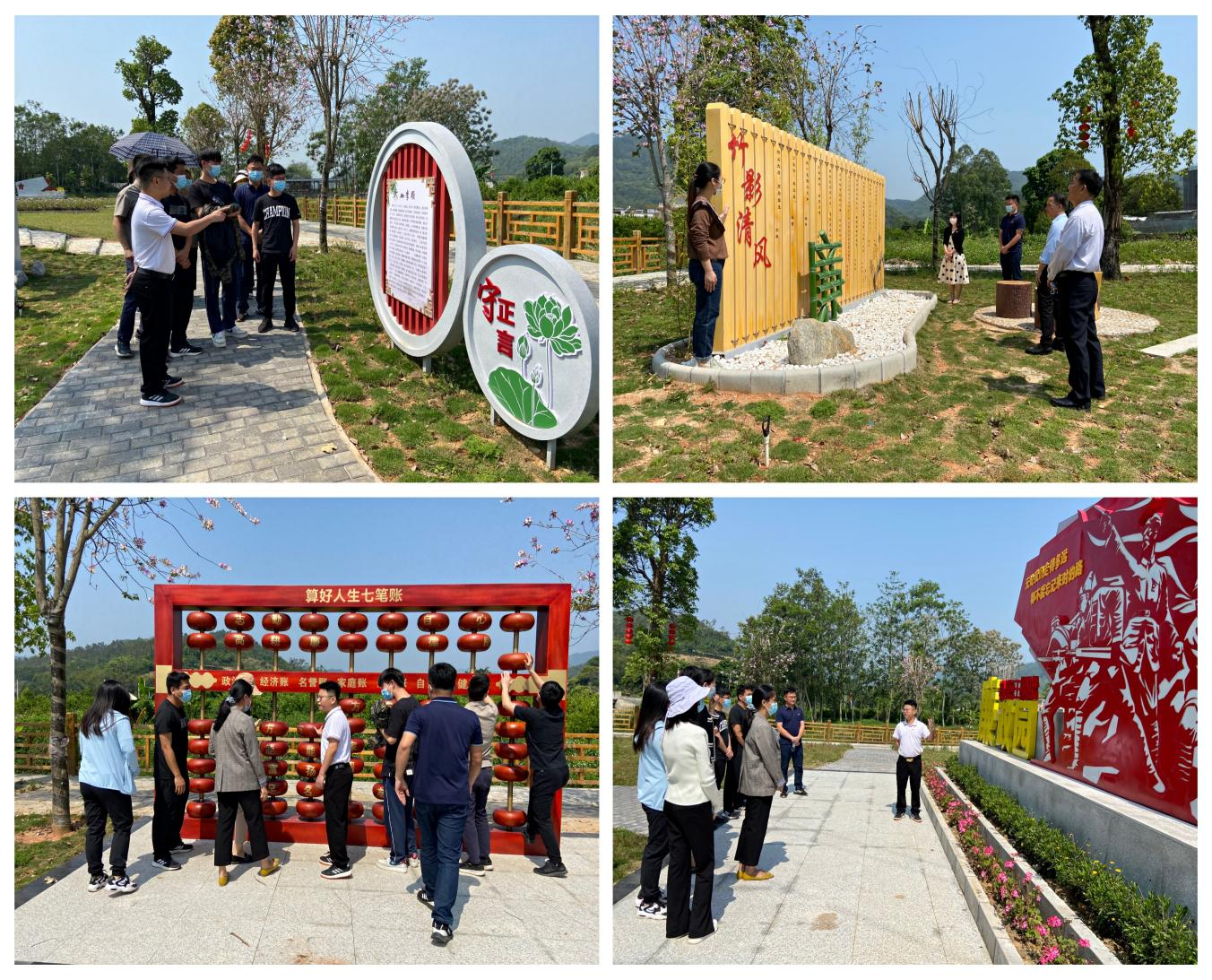 当天上午,镇纪委书记陈文顺带领第一季度过“政治生日”的党员,在讲解员的介绍下集中参观了石岗村三棵松廉政文化园,分别围绕“红心尚廉存风骨”、“名曲颂廉忆初心”、“清池蕴廉润万家”、“利民崇廉谱新篇”四大主题区域开展讨论。