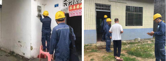 组织供电所到低陂村为2户低保户检测安装用电设施