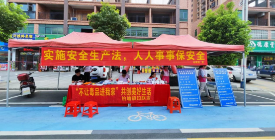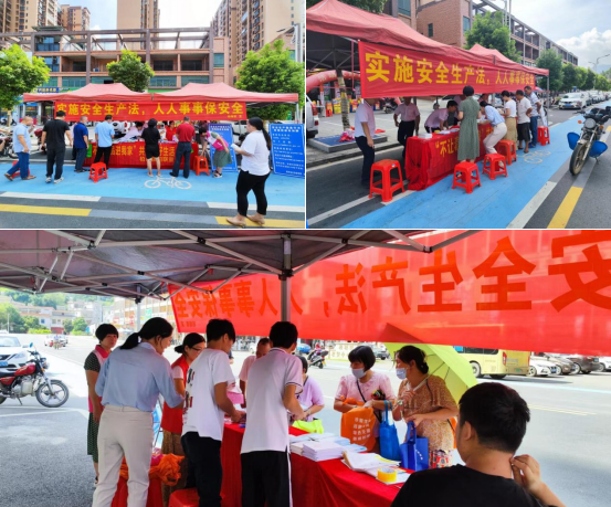 6月24日,社会综合治理事务部联合应急办、禁毒办、专职消防队、农林水综合服务部、建设和道路事务部、镇妇联、镇团委在农贸商业中心举行安全生产月活动。