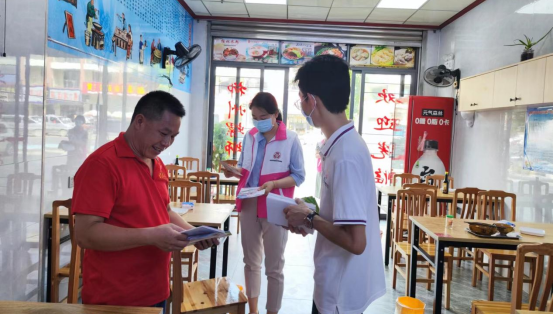 工作人员给三小场所、商铺、居民家里派发安全宣传单及讲解安全生产知识