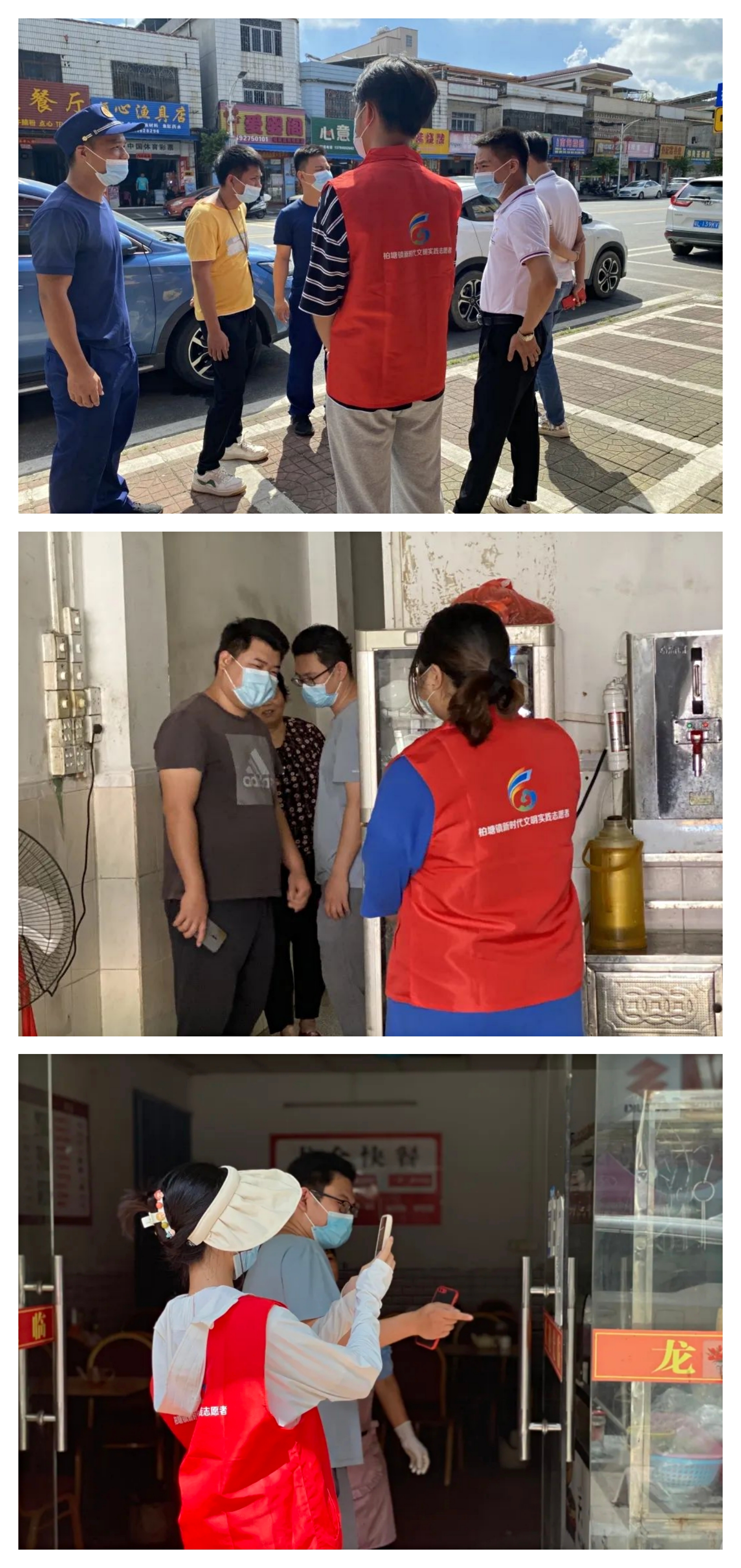 柏塘镇大学生协会志愿者积极配合相关部门,组队入店、入户科普宣传场所码的使用及作用,积极引导商家建立、完善进店打卡制度,减少群众出行隐患。