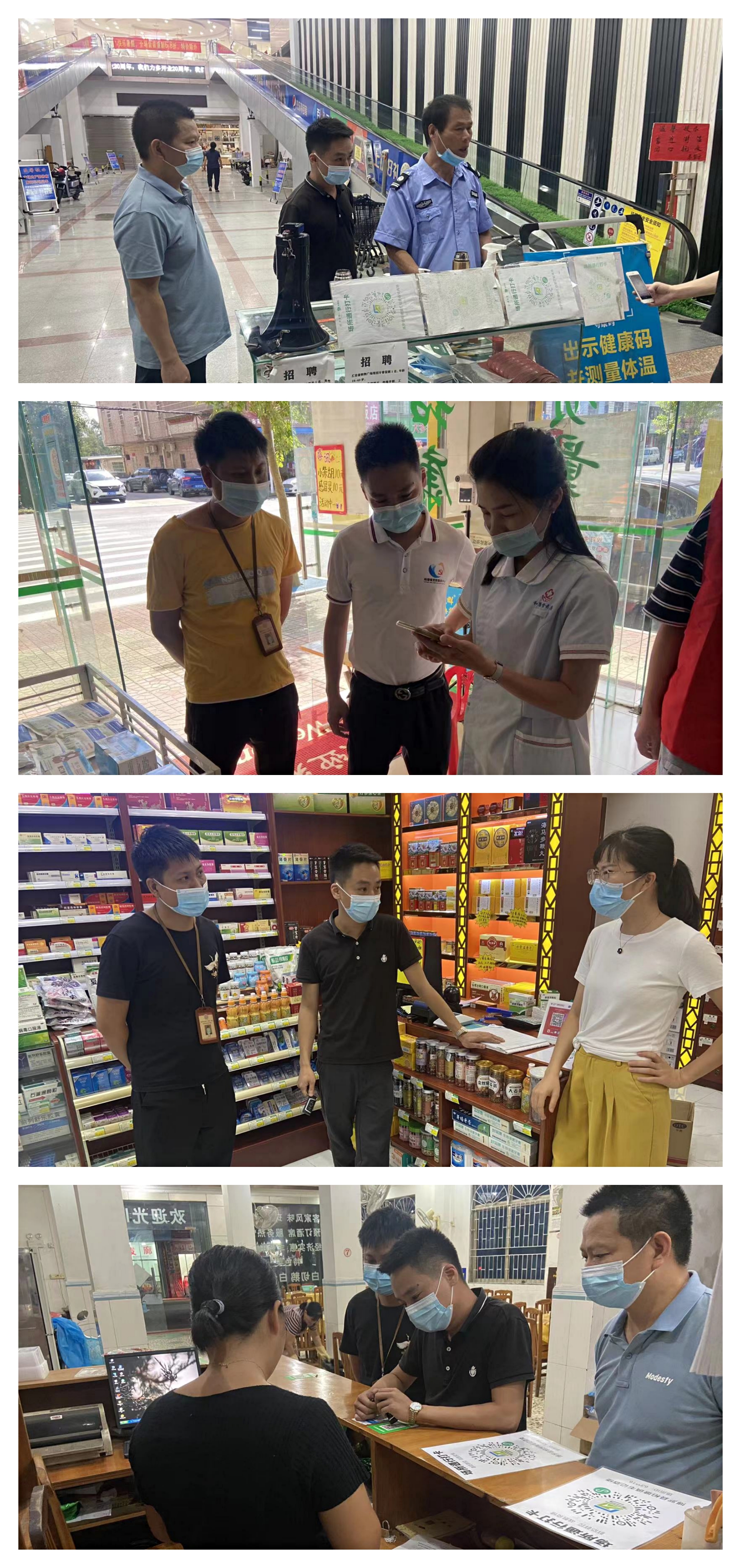 镇领导班子成员带队实地走访市场、沿街商铺、村居道口等,开展“场所码”申领张贴专项督查指导,对“场所码”张贴不规范的场所,现场督促整改,并积极宣传“场所码”对疫情防控的重要性,引导店主正确认识,积极配合,严格落实进店扫码工作。