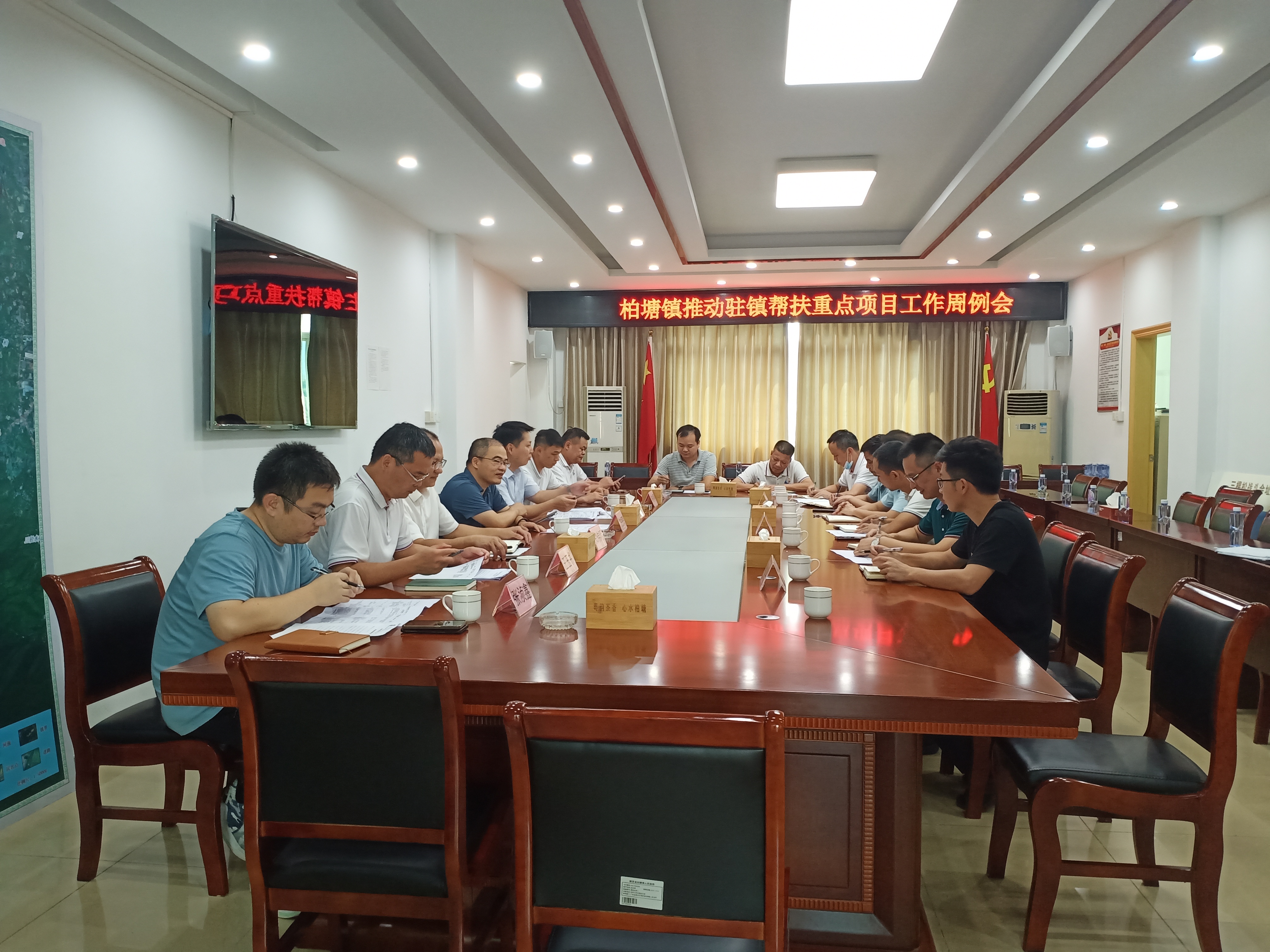 7月 15 日下午,柏塘镇召开了柏塘镇推进驻镇帮扶重点项目工作周例会,县政协副主席陈振晖,镇党委副书记、镇长曾伟宏,镇人大主席郑伟明等有关领导及部门负责人参加了会议。