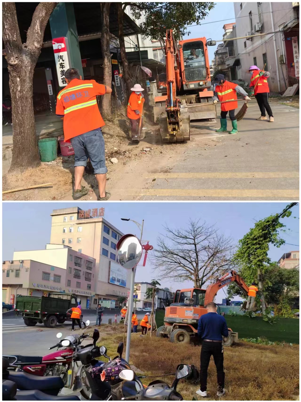 为营造节日期间良好的人居环境,环卫站组织清洁员、环卫车辆、挖掘机等对广梅公路沿线两边的环境卫生进行深度整治,特别是对建筑垃圾、杂草、卫生死角和门口乱堆乱放进行清理。