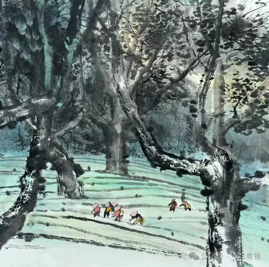 柏塘镇,地处粤港澳大湾区的核心区域,枕倚象头山脉,毗邻罗浮山,以红色与绿色为主题,走出了一条独特的三产融合乡村振兴之路。翠绿的茶山、云雾袅娜的自然景象,吸引着画家们的目光。画家们行进在绿色的茶园、榄园之中,一路欣赏着四时变换中的柏塘春色,感受着大自然的馈赠和振兴美丽乡村所取得的成果。