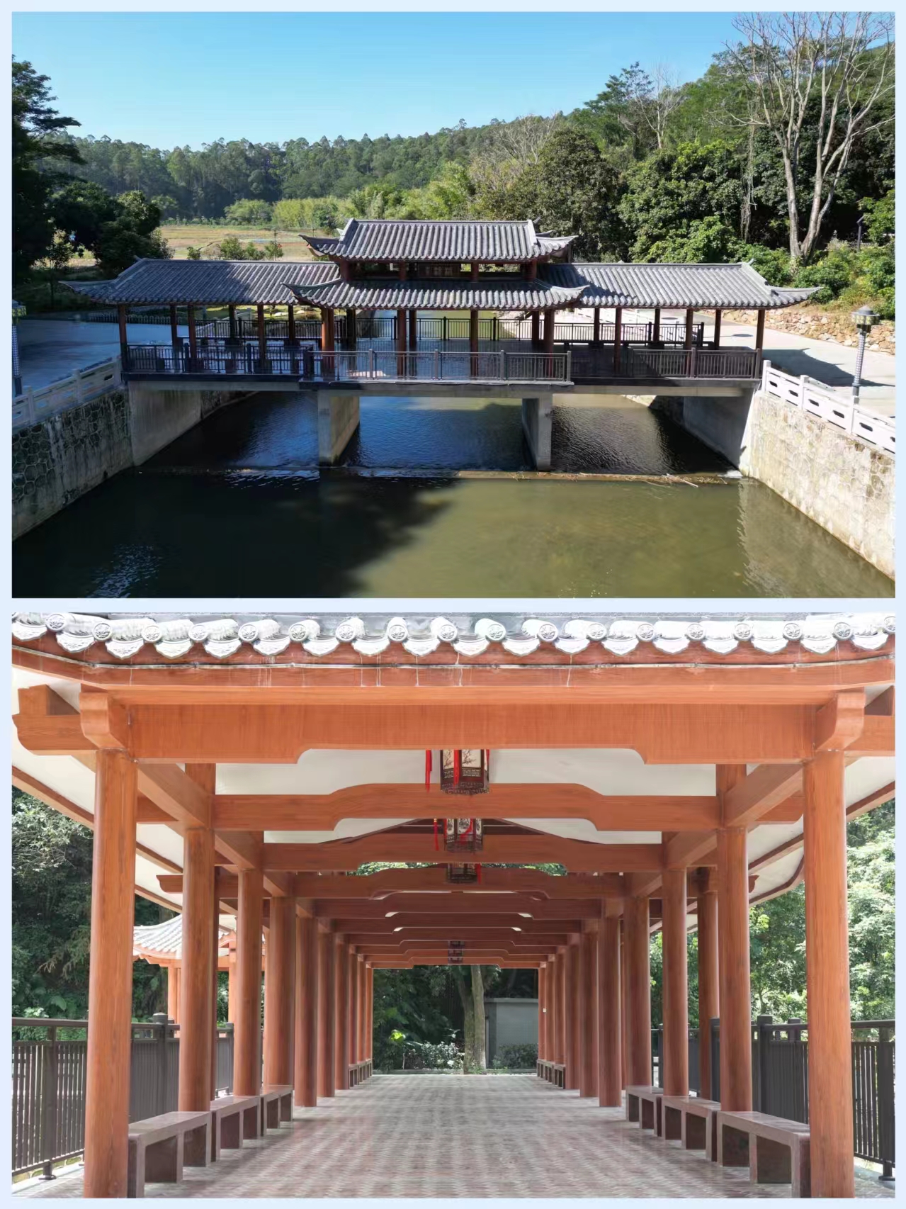 景观风雨桥建设后图片