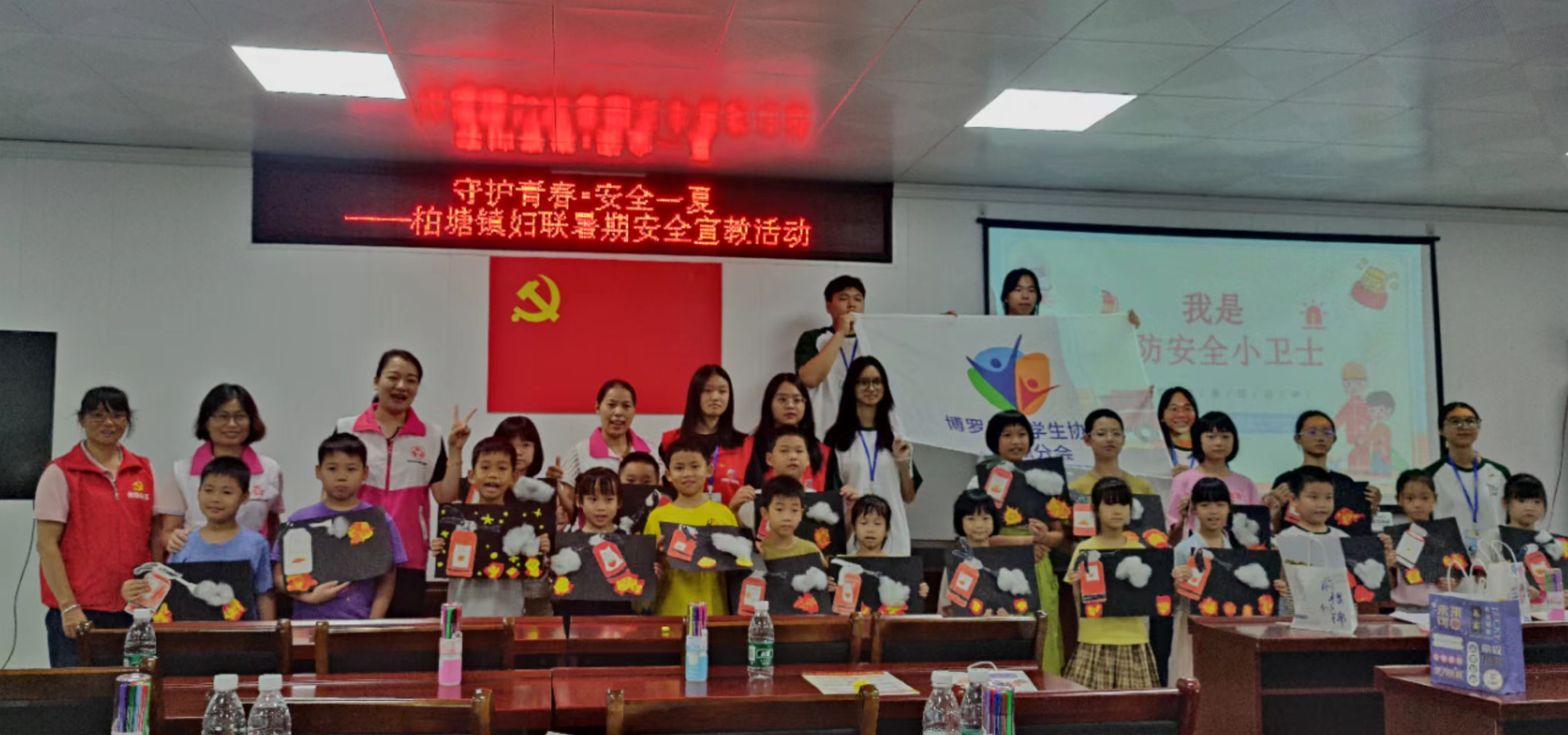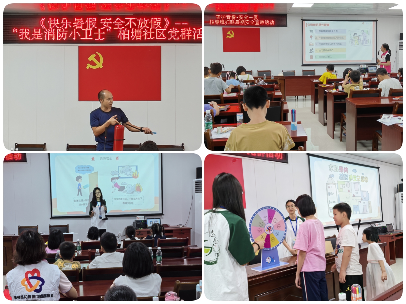 为进一步深入贯彻落实习近平总书记关于妇女儿童和妇联工作重要论述, 合力做好暑期儿童关爱工作, 深化爱心妈妈结对关爱三年行动, 为孩子们欢度假期创造有利条件、营造良好氛围, 8月2日上午,柏塘镇妇联联合镇专职消防大队、大学生协会在柏塘社区开展“少年儿童心向党,真情相伴护成长”暑期安全宣教活动。