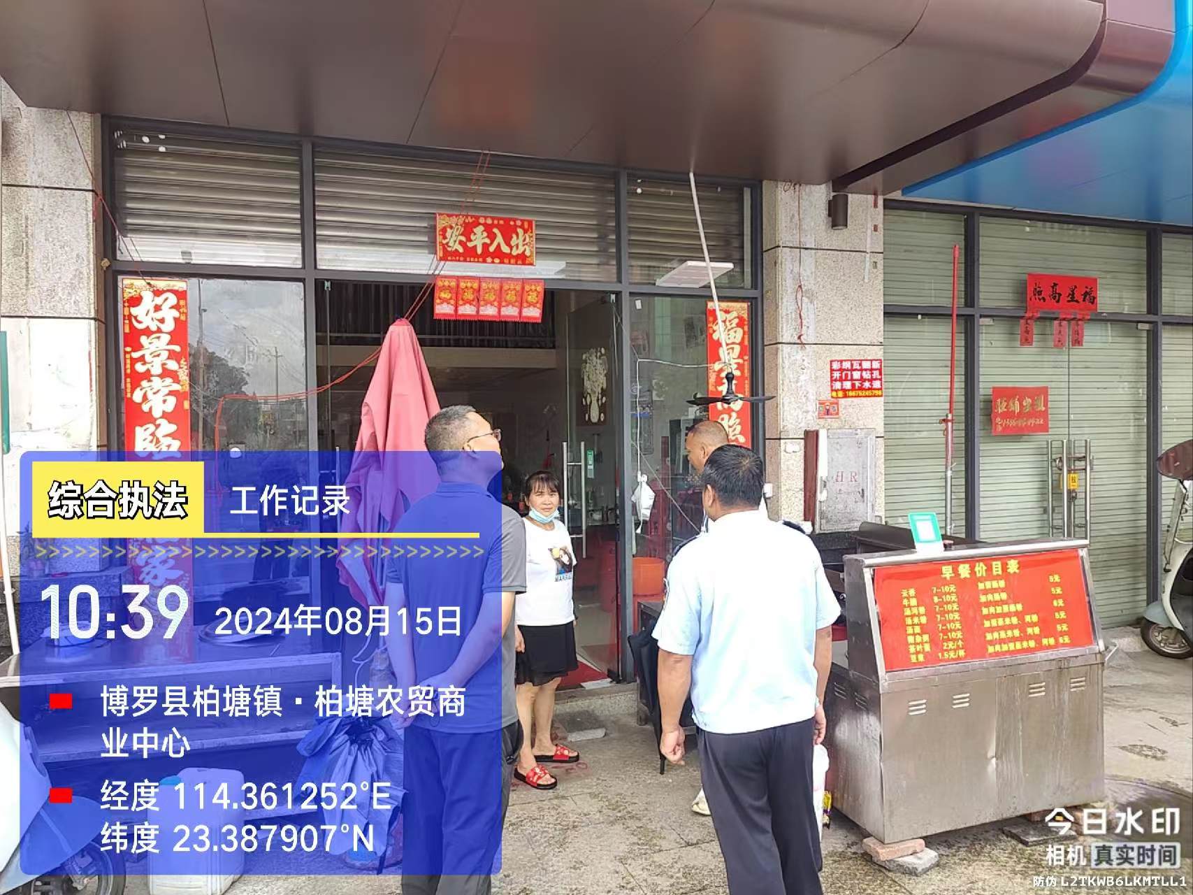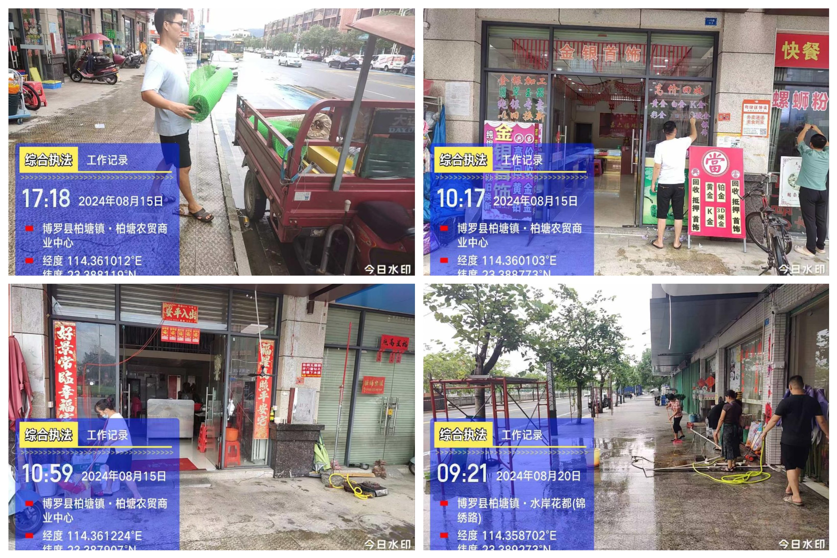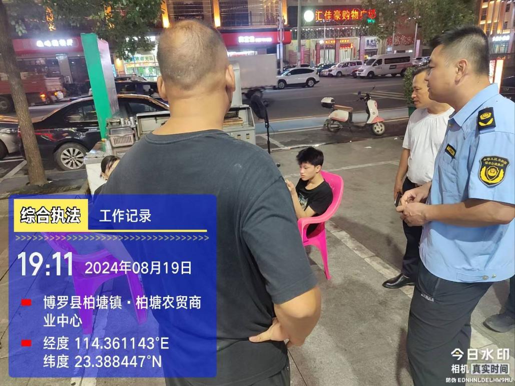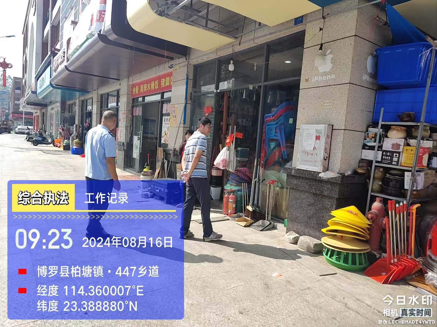 我镇执法人员在圩镇重点路段发现店铺存在占道经营行为,对经营者进行教育劝导。