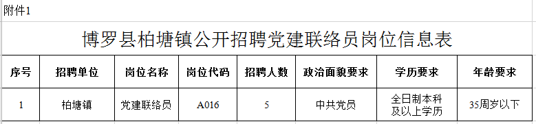 我镇招聘5名党建联络员(具体岗位详见附件1)。