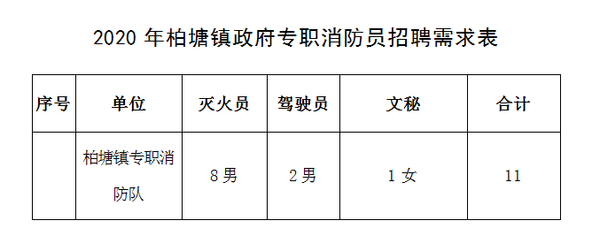 1.2020年柏塘镇政府专职消防员招聘需求表